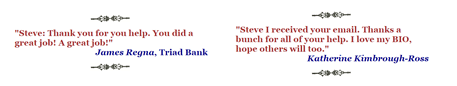 RealtyBios is a ShortBios LongBios Corporation conceived, founded, owned, and managed by brothers Steve Berent and Irwin Berent, who are also the primary writers, interviewers and advisors for every bio. This company evolved from their years of writing short bios (as well as full-size biographies as part of StarMemoirs) for clients engaged in every imaginable occupation, profession, hobby, and event. After years writing these short bios, hundreds of which were invariably for real estate agents (by far the most common professional group requesting bios), they established the RealtyBios company and quickly established themselves as the most respected and well-known short-biography-writing company in history and the only one of its kind specializing in the realty profession. If Guinness had a category of world record for number of Real Estate Bios written, they would be in the book.