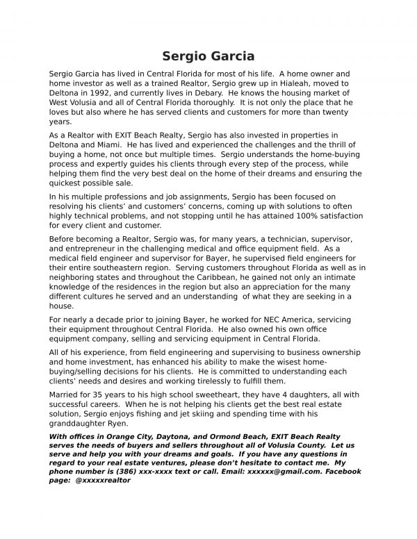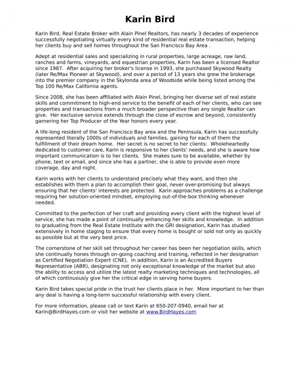 For bio for a real estate agent, see our ✩ REALTOR BIO ✩ service
