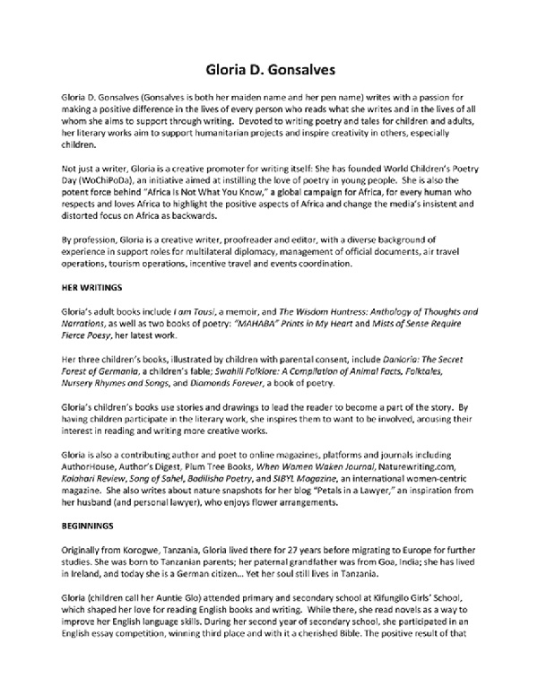 Use the Bio Info Form farther below to submit any information or document (such as old bio or resume) you’d like us to have for getting your bio written …